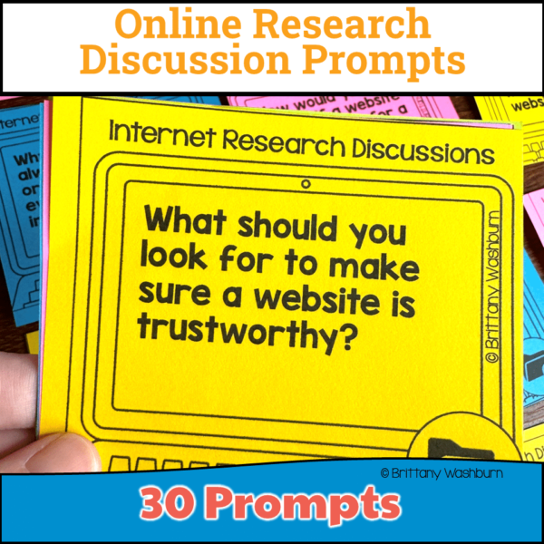 Help your students become savvy digital researchers with these 30 Online Research discussion prompts. Perfect for guiding thoughtful conversations, these printable cards will teach students how to navigate the internet effectively and responsibly.