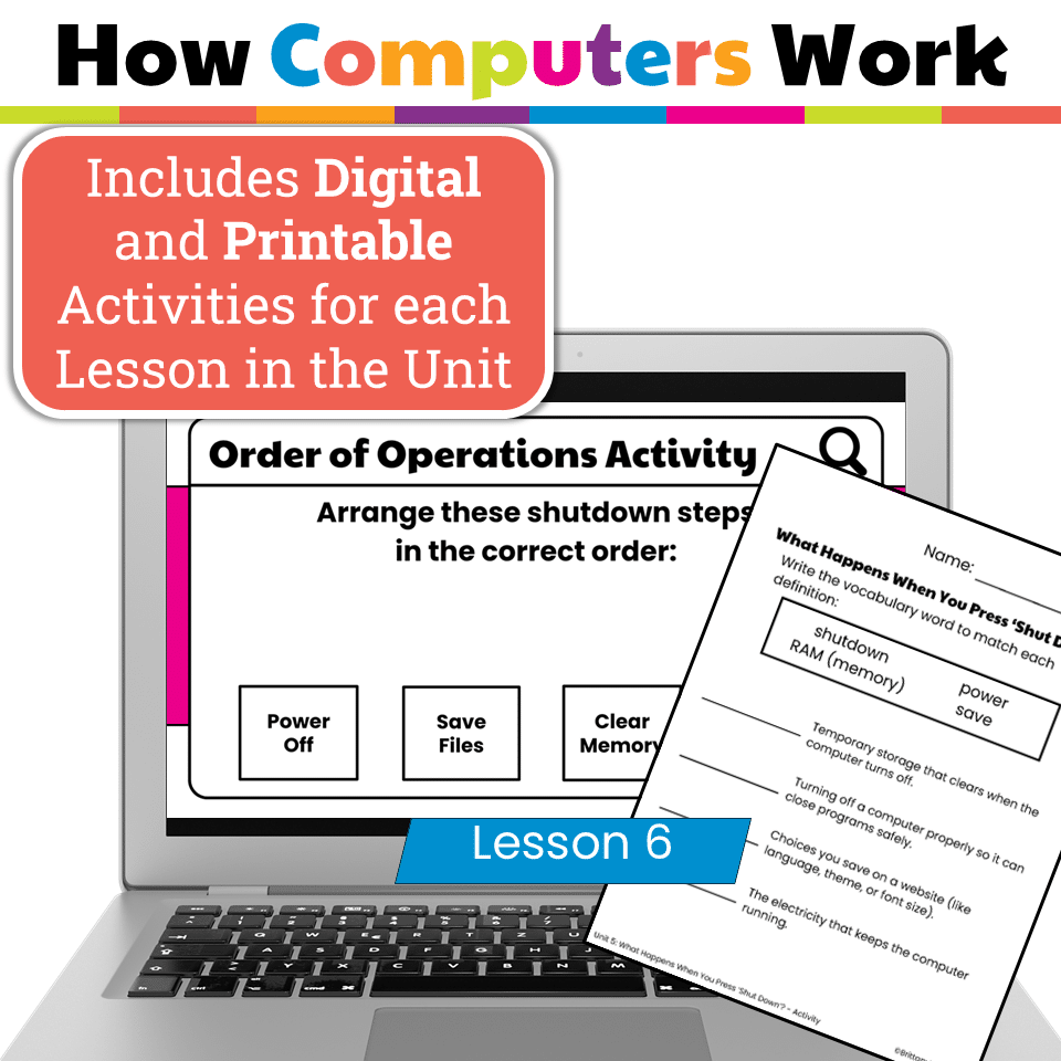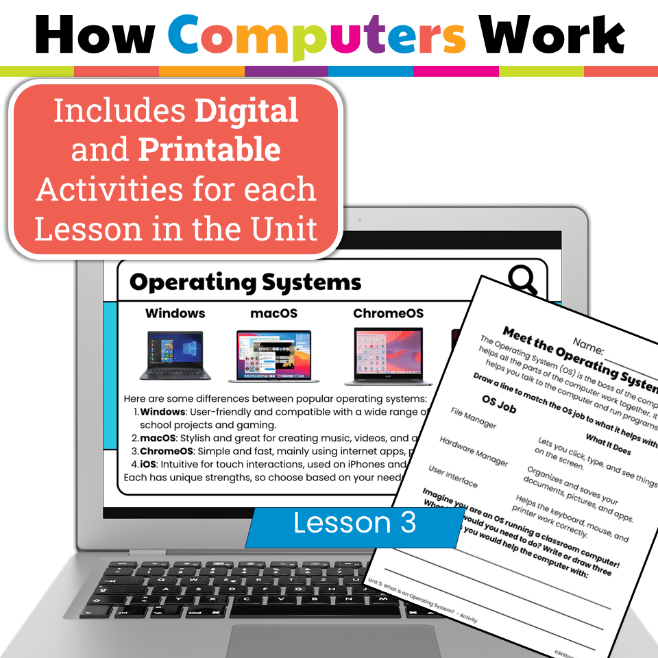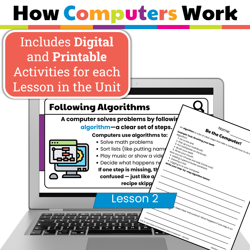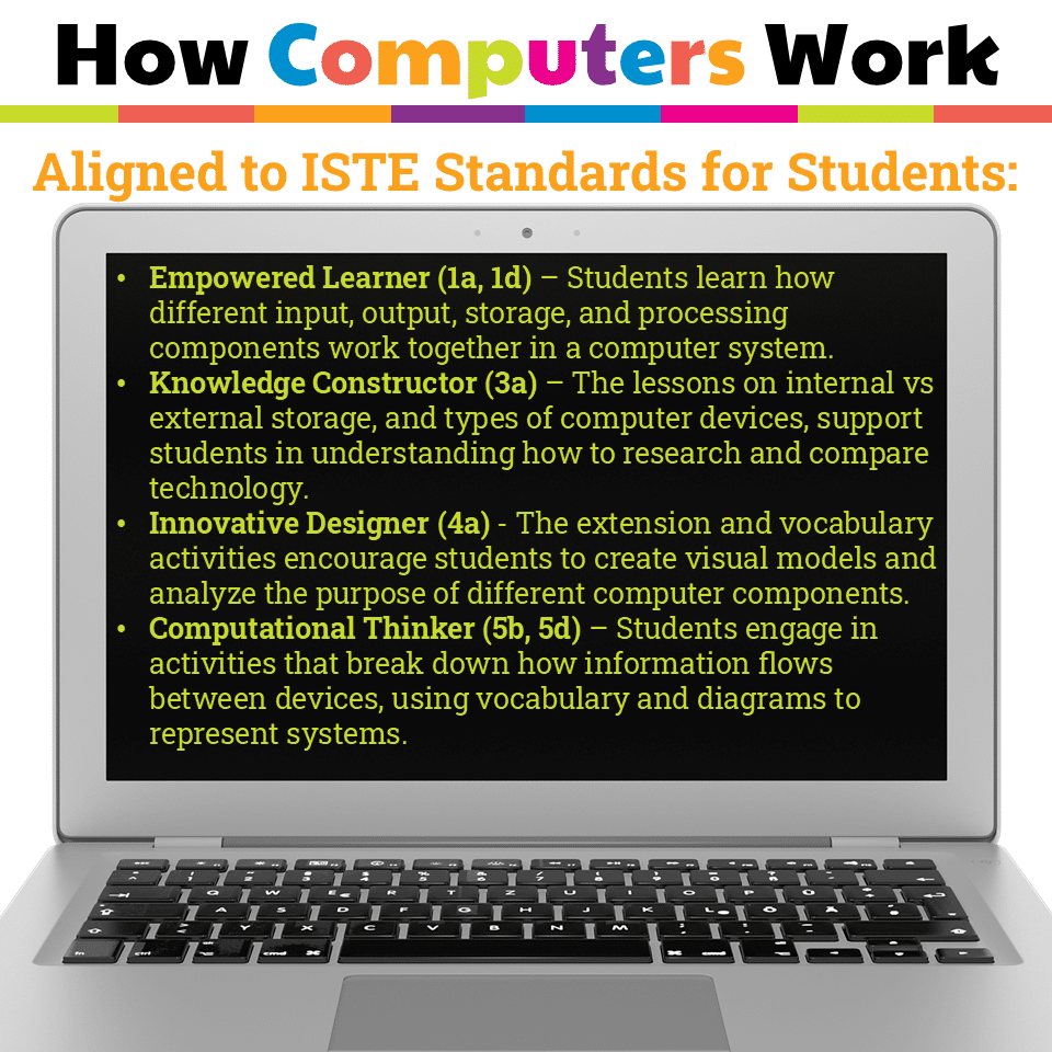 Teach students how computer systems work with this elementary tech unit on hardware and information flow. Includes 6 lessons, Google Slides, and digital activities.