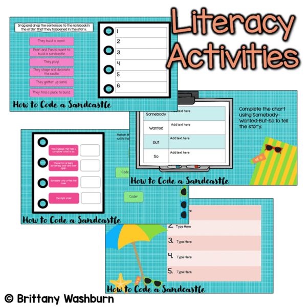 Digital activities for the book How to Code a Sandcastle that are perfect for grades 3-5. 12 total digital activities that will help students expand their understanding of this great read aloud storybook. I designed this for technology teachers or media specialists so that you can read the same book to all 3 grade levels and then assign them different activities. You can read it again the next year with fresh activities for the next grade!